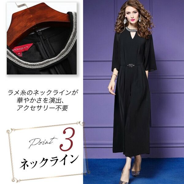 パーティードレス パンツ 結婚式 二次会 パンツドレス 結婚式ドレス お呼ばれ 20代 30代 40代 オールインワン 体型カバー 七分袖 黒