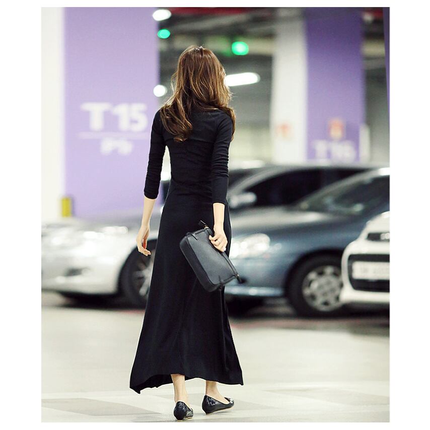マキシワンピース 長袖 ラウンドネック 無地 Aライン シンプル きれいめ リラックス カジュアル 大人可愛い 20代 30代 fsk0783