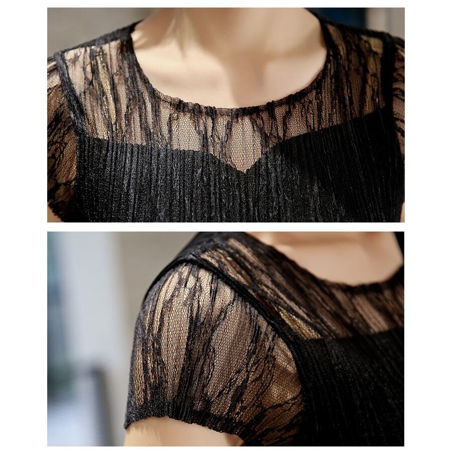 マキシワンピース 半袖 レース Aライン ラウンドネック シースルー 体型カバー エレガント 大人可愛い きれいめ リゾート 夏 fsk0825