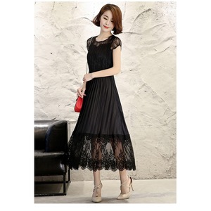 マキシワンピース 半袖 レース Aライン ラウンドネック シースルー 体型カバー エレガント 大人可愛い きれいめ リゾート 夏