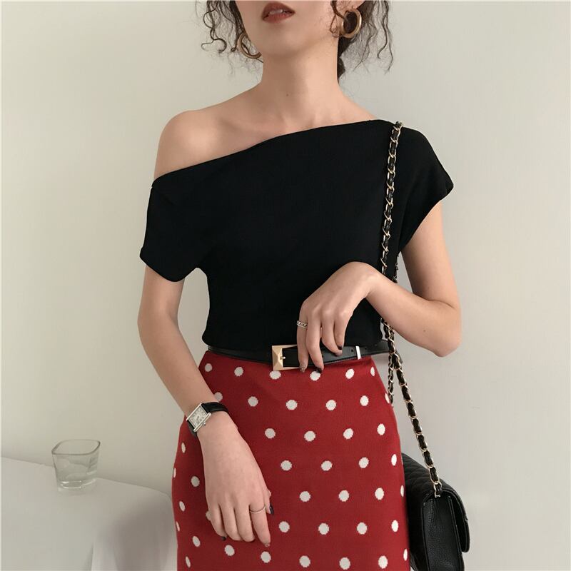 半袖 ブラウス ワンショルダー 肩出し シンプル 無地 タイト おしゃれ セクシー エレガント 夏 20代 30代 デート 女子会