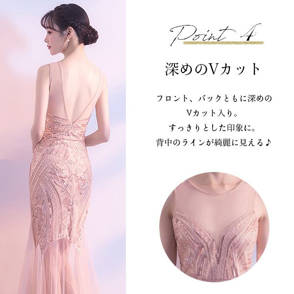 スタイルが綺麗に見える華やかなマーメイドラインのロングドレス。