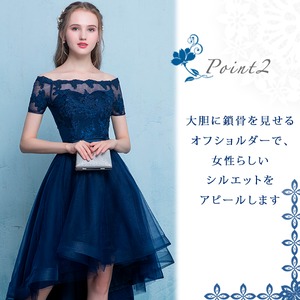 パーティドレス ドレス 結婚式 二次会 お呼ばれ 発表会 ネイビー レース オフショル Aライン チュール フィッシュテール