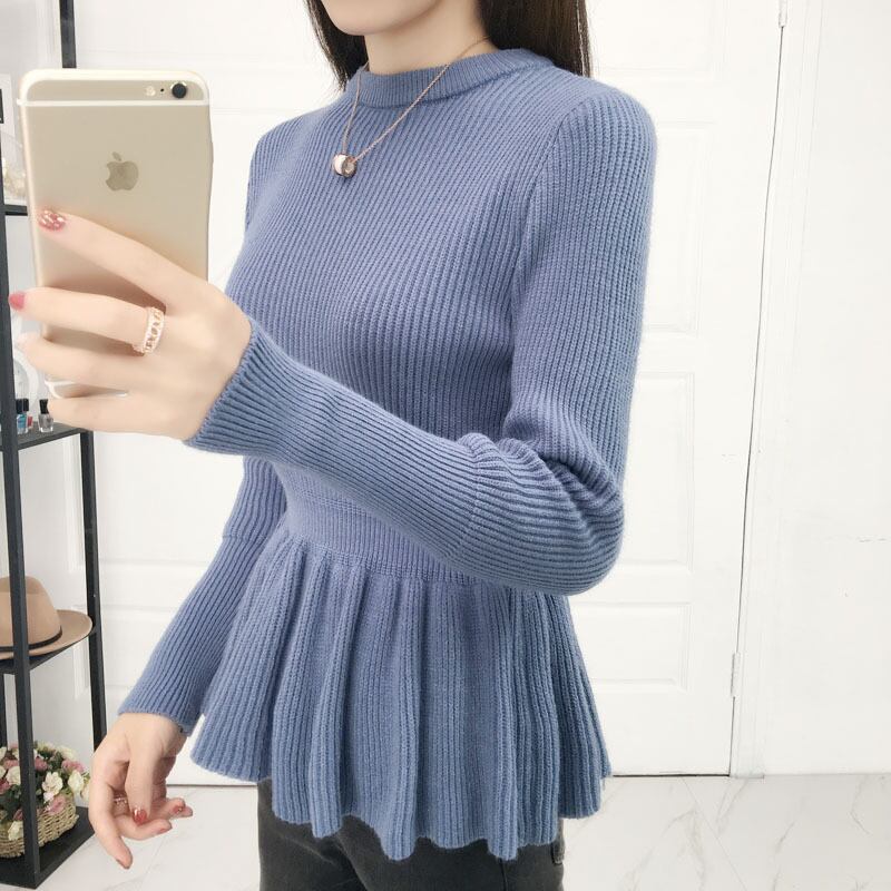 トップス ニット ペプラム リブ ウエスト 痩せ見え 長袖 クルーネック 20代 30代 オフィス フェミニン fsk1462