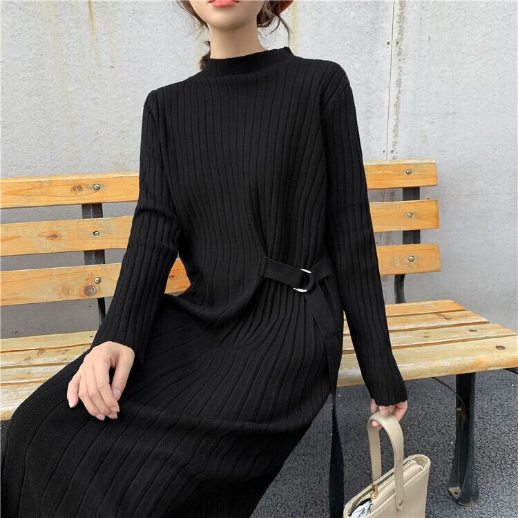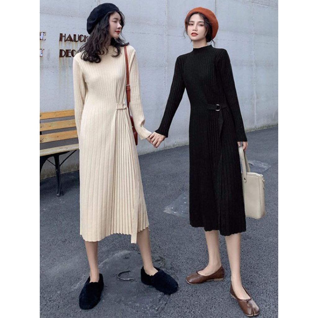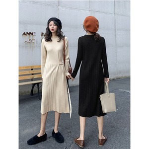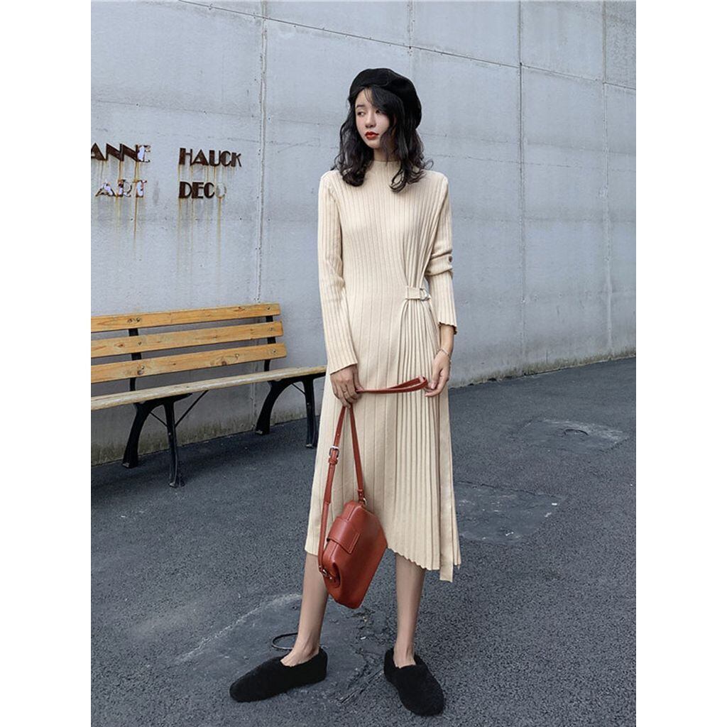 ワンピース ジャージワンピ アシンメトリー プリーツ風 ウエストベルト すっきり ゆったり シンプル カジュアル オフィス デート 10代 20代 30代 Aライン ラウンドネック fsk1466