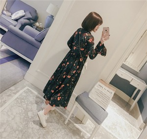 ワンピース シフォンワンピ 花柄 フラワーワンピ フレア袖 ゆったり 大きいサイズ ストレート リボン ミモレ丈 エレガント ガーリー フェミニン デート カジュアル fsk1489