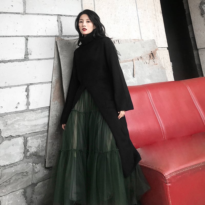 ワンピース タートルネック ロングニット ニットワンピース 深スリット センタースリット カジュアル トレンド 秋冬 女子会 デート オーバーサイズ fsk1500