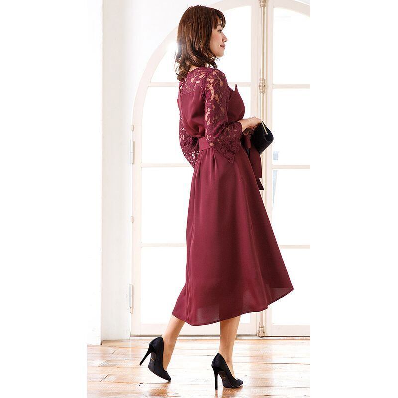 ワンピース ドレス ビスチェドレス ビスチェ レースワンピース 切り替え ウエストリボン Aライン ミモレ丈 結婚式 二次会 パーティ セレモニー エレガント
