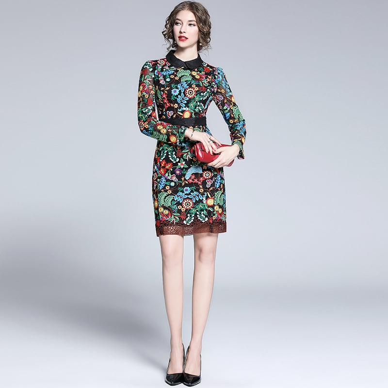 ワンピース ミニ丈 花柄 レトロ レース 襟付き デート お食事会 レディース 20代 30代 fsk1528