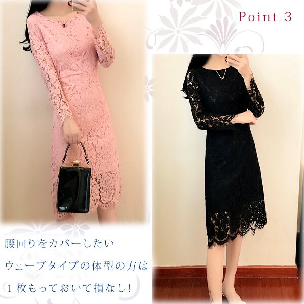 トレンドや年齢に左右されない定番の総レースワンピースです。1枚持っていれば様々なパーティーシーンでお使いいただけます。