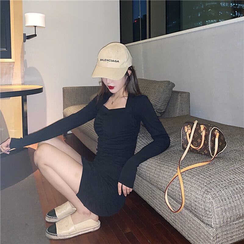 ミニワンピース シャーリング オールインワン シンプル セクシー トップス フェミニン ガーリー ラブリー Aライン タイト お出かけ デート fsk1669