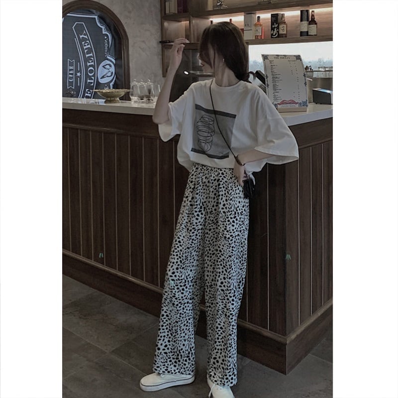 ワイドパンツ ボトムス ロングパンツ レオパード アニマル柄 スラックス フレアパンツ Aライン ハイウエスト ヒョウ柄 カジュアル オーバーサイズ シンプル fsk1760