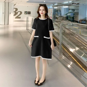 ワンピース ショート ストレートライン 縁取り 配色 バイカラー モノトーン 半袖 丸首 清楚系 デート エレガント 通勤 上品