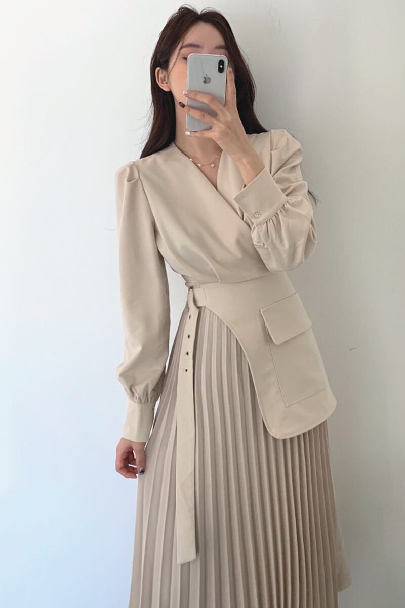ワンピース フレアワンピース ワンピドレス 膝下 袖あり 長袖 Vネック 襟なし フレア セミフレア プリーツ ポリエステル かわいい 大人可愛い きれいめ シンプル 大人 上品 おしゃれ お洒落 大人可愛い 大人女子 ラブリー キュート ガーリー 主役級 存在感 無地 春 秋 10代 20代 30代 オフィス ビジネス OL 通勤 学生 通学 デート お出かけ 女子会 休日 イベント リゾート 旅行 ホテル レストラン 韓国 韓国系 オルチャン ファッション コーデ スタイル S M L