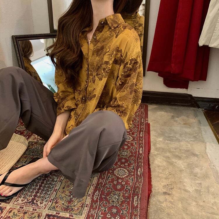 トップス シャツ 袖あり 長袖 萌袖 襟付き 大人可愛い カジュアル おしゃれ お洒落 かっこいい レトロ アジアン こなれ感 ラフ メンズライク ボーイッシュ ルーズ 個性的 クール 主役級 存在感 花柄 ボタニカル 春 夏 秋 10代 20代 30代 40代 レディース OL 学生 お出かけ アウトドア 旅行 海 高原 着回し 普段使い 楽ちん トレンド インスタ映え