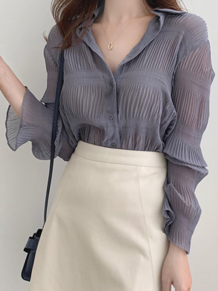 トップス シャツ ブラウス 袖あり 長袖 襟付き シフォン フリル 透け感 薄手 大人可愛い きれいめ シンプル カジュアル 大人 上品 お洒落 大人女子 こなれ感 ガーリー クール セクシー エレガント 主役級 存在感 とろみ感 抜け感 無地 春 夏 入学式 入園式 卒業式 卒園式 10代 20代 30代 40代 レディース 女性用 オフィス ビジネス OL 通勤 学生 デート お出かけ 女子会 パーティー イベント 旅行 モテ S M L アプリコット グレーブルー
