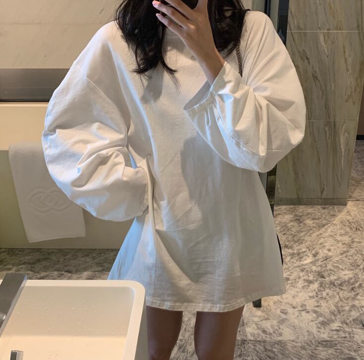 トップス シャツ 白トップス 長袖 ラウンドネック 綿 大人可愛い カジュアル 無地 春 10代 20代 レディース お出かけ 普段使い ゆったり ワンサイズ 白