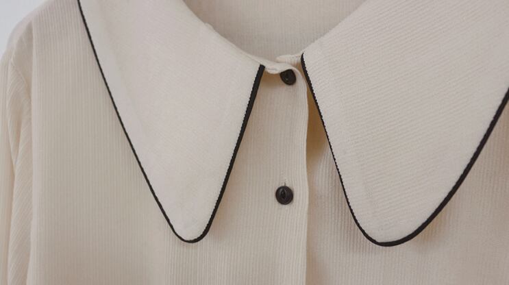 トップス シャツ 長袖 襟付き コーデュロイ かわいい 上品 秋 10代 20代 レディース デート お出かけ S L アプリコット