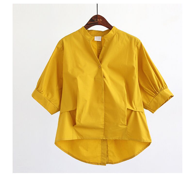 トップス シャツ シャツワンピース 5分袖 Vネック 襟なし スタンドカラー シンプル ルーズ 抜け感 無地 ボーダー 春 夏 学生 韓国系