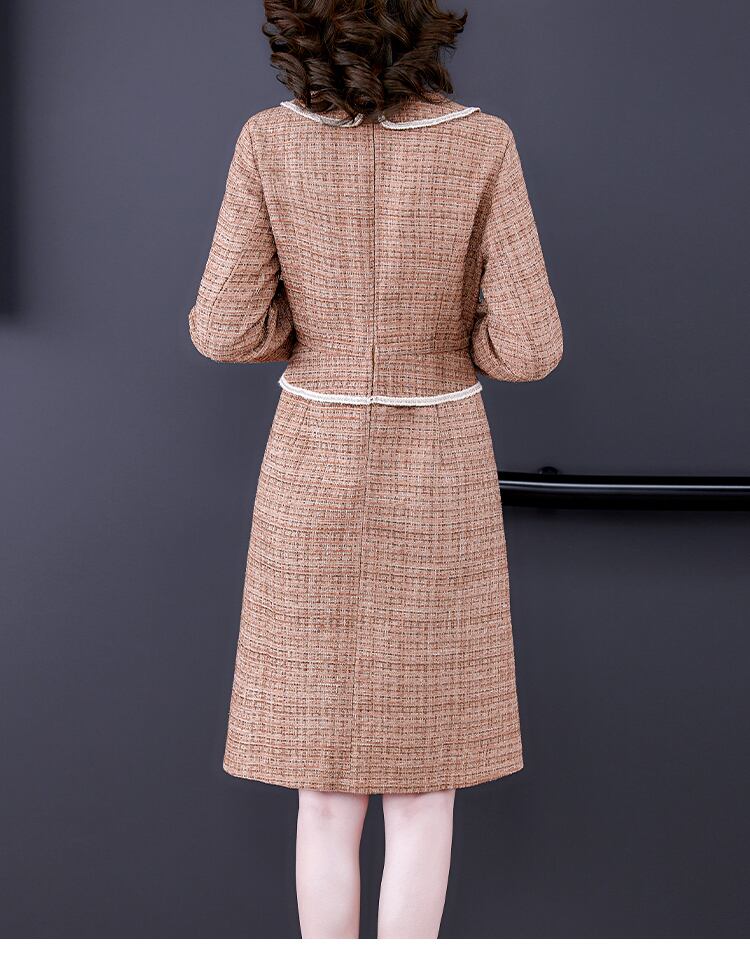 ワンピース ツーピース風 膝丈 ひざ丈 ミディアム丈 袖あり 長袖 ラウンドネック 襟付き 切り替えデザイン ツイード 大人可愛い きれいめ シンプル 大人 上品 お洒落 レトロ 大人可愛い エレガント 主役級 存在感 フォーマル 春 秋 冬 入学式 入園式 卒業式 卒園式 謝恩会 20代 30代 40代 レディース ママ ビジネス OL 通勤 お出かけ イベント レストラン 定番 S M L XL 2XL 3XL