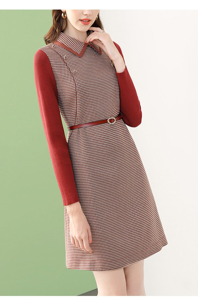 ワンピース ミニ ショート 膝上 袖あり 長袖 襟付き Aライン 切り替えデザイン ウエストマーク かわいい 大人可愛い きれいめ 大人 上品 おしゃれ お洒落 レトロ 大人女子 こなれ感 キュート ガーリー 主役級 存在感 千鳥格子 春 秋 20代 30代 40代 レディース ビジネス OL 通勤 学生 通学 デート お出かけ 女子会 ホテル レストラン 着回し 普段使い 韓国系 オルチャン ファッション モテ S M L XL ブラウン