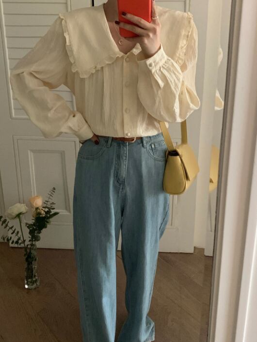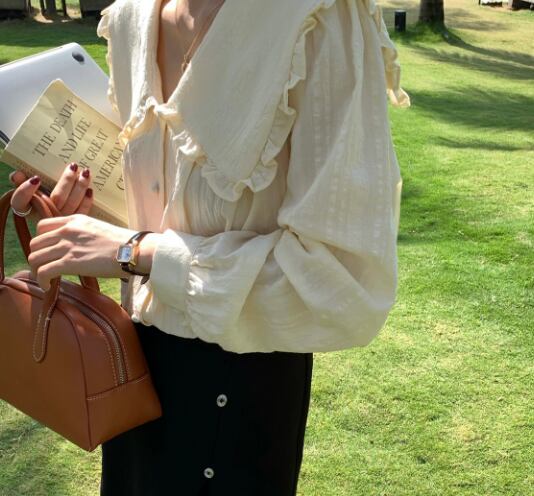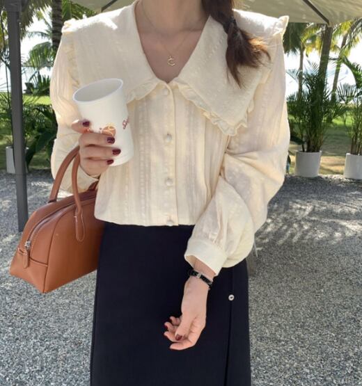 トップス シャツ ブラウス 長袖 襟付き かわいい カジュアル 上品 おしゃれ 春 10代 20代 レディース 通勤 お出かけ 普段使い S M L ベージュ