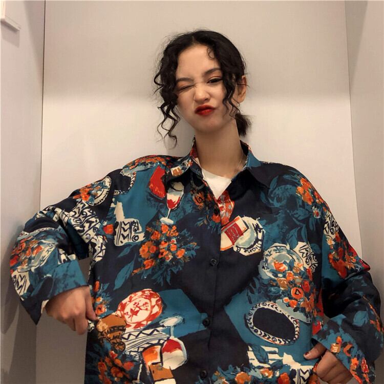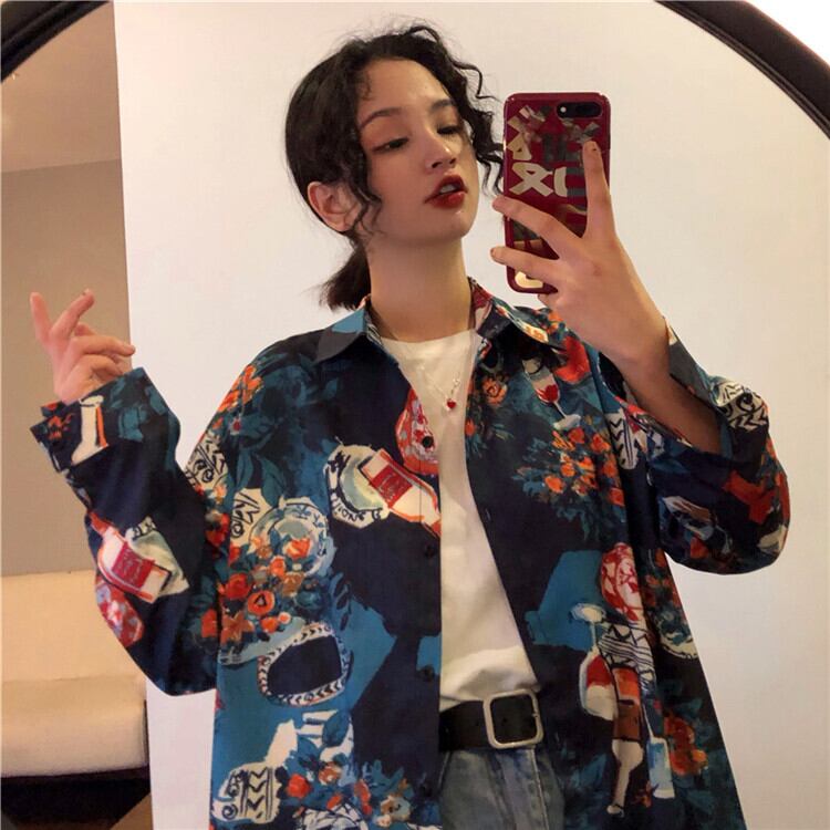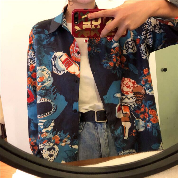 シャツ 袖あり 長袖 萌袖 襟付き ストレート 大人可愛い カジュアル 大人 おしゃれ お洒落 かっこいい レトロ アジアン こなれ感 ラフ メンズライク ボーイッシュ ルーズ 個性的 クール 主役級 存在感 柄 春 秋 冬 10代 20代 30代 レディース 学生 通学 お出かけ 公園デビュー 女子会 アウトドア 旅行 着回し 普段使い 重ね着 インスタ映え S M L XL ビッグサイズ ゆる