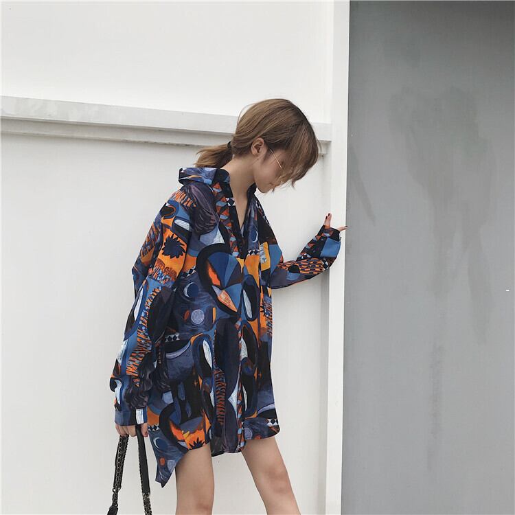 トップス シャツ 袖あり 長袖 ボリューム袖 襟付き かわいい カジュアル おしゃれ お洒落 かっこいい レトロ エキゾチック ラフ メンズライク ボーイッシュ スポーティー 個性的 クール 主役級 存在感 柄 春 夏 秋 10代 20代 30代 レディース 学生 通学 お出かけ アウトドア イベント リゾート 旅行 海 普段使い トレンド インスタ映え XL 2XL 3XL 4XL 大きいサイズ ビッグサイズ ゆったり ブルー