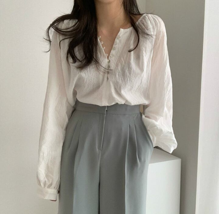 トップス ブラウス 長袖 ボリューム袖 ラウンドネック 透け感 綿 大人 おしゃれ 夏 10代 20代 レディース デート お出かけ 普段使い S M L 白 黒