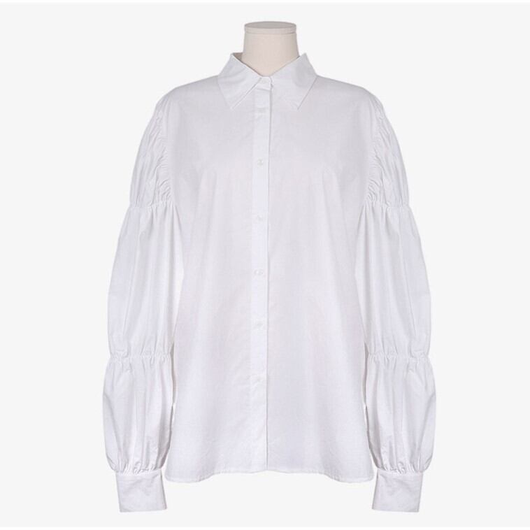 トップス ブラウス 白トップス 袖あり 長袖 ボリューム袖 パフスリーブ 襟付き プリーツ かわいい 大人可愛い きれいめ シンプル カジュアル 大人 上品 おしゃれ お洒落 大人可愛い 大人女子 こなれ感 個性的 エレガント モダン 主役級 存在感 無地 春 秋 冬 10代 20代 30代 40代 レディース 学生 通学 デート お出かけ 着回し 普段使い 韓国 韓国系 オルチャン ファッション コーデ スタイル トレンド 流行 インスタ映え 色展開 白 ホワイト