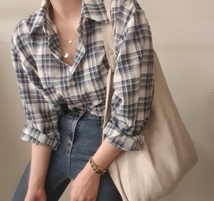 トップス シャツ 長袖 襟付き 綿 カジュアル おしゃれ ラフ チェック柄 春 20代 レディース お出かけ ワンサイズ