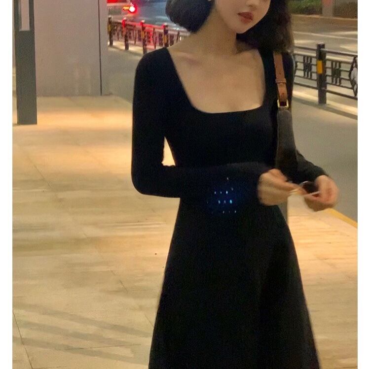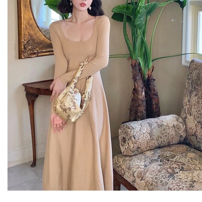 ワンピース フレアワンピース 膝下 ミモレ ミモレ丈 袖あり 長袖 スクエアネック 襟なし フレア セミフレア かわいい 大人可愛い きれいめ シンプル カジュアル 大人 上品 おしゃれ お洒落 大人可愛い 大人女子 抜け感 無地 学生 通学 デート お出かけ 女子会 旅行 ホテル ガーデン 普段使い モテ S M