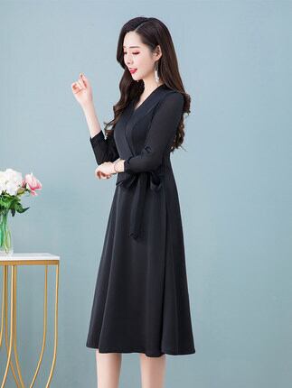 ワンピース 膝丈 ひざ丈 ミモレ ミモレ丈 袖あり 長袖 Vネック 襟付き 襟なし フレア セミフレア アシンメトリー リボン ウエストマーク ウエストリボン かわいい 大人可愛い きれいめ シンプル 大人 上品 おしゃれ 大人可愛い 大人女子 個性的 エレガント フォーマル 無地 ビジネス OL 通勤 パーティー 黒 ブラック 赤 レッド