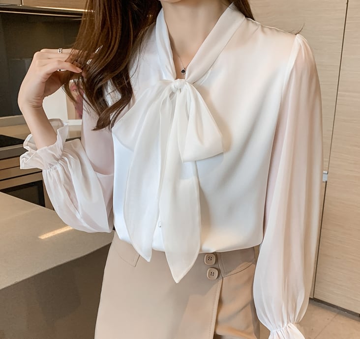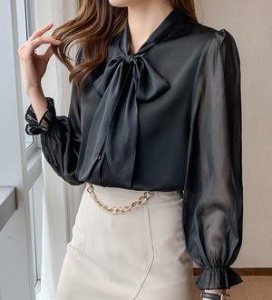大きいリボンが特徴的のきれいめブラウス。