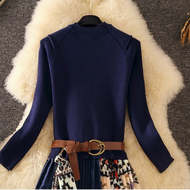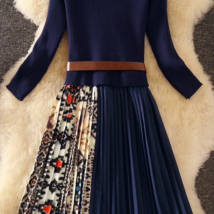 ワンピース プリーツスカート 膝下 ロング ロング丈 袖あり 長袖 ラウンドネック フレア セミフレア アシンメトリー 切り替えデザイン ドッキング ベルト ウエストマーク 切り替えデザイン かわいい 大人可愛い きれいめ 大人 上品 おしゃれ お洒落 レトロ エスニック 大人可愛い 大人女子 個性的 エレガント モダン 存在感 ビジネス OL 通勤 学生 通学 デート お出かけ 休日 普段使い モテ
