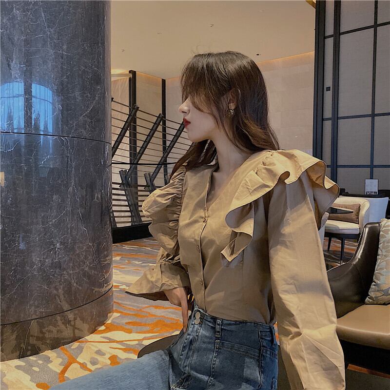 トップス ブラウス 白トップス 袖あり 長袖 Vネック フリル かわいい 大人可愛い きれいめ 大人 おしゃれ お洒落 かっこいい 大人女子 ラブリー キュート ガーリー 個性的 エレガント 主役級 存在感 無地 春 秋 10代 20代 30代 レディース オフィス OL 通勤 学生 通学 デート お出かけ イベント リゾート 旅行 着回し 普段使い オルチャン ファッション モテ インスタ映え S M L ホワイト ベージュ