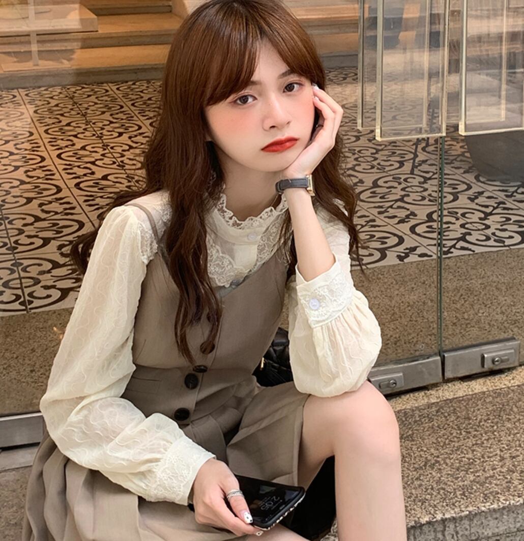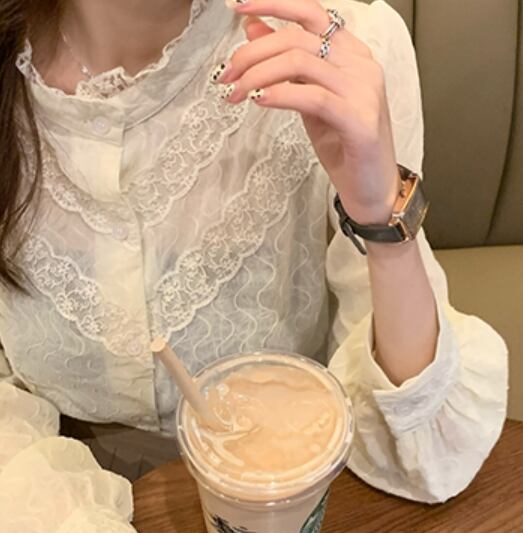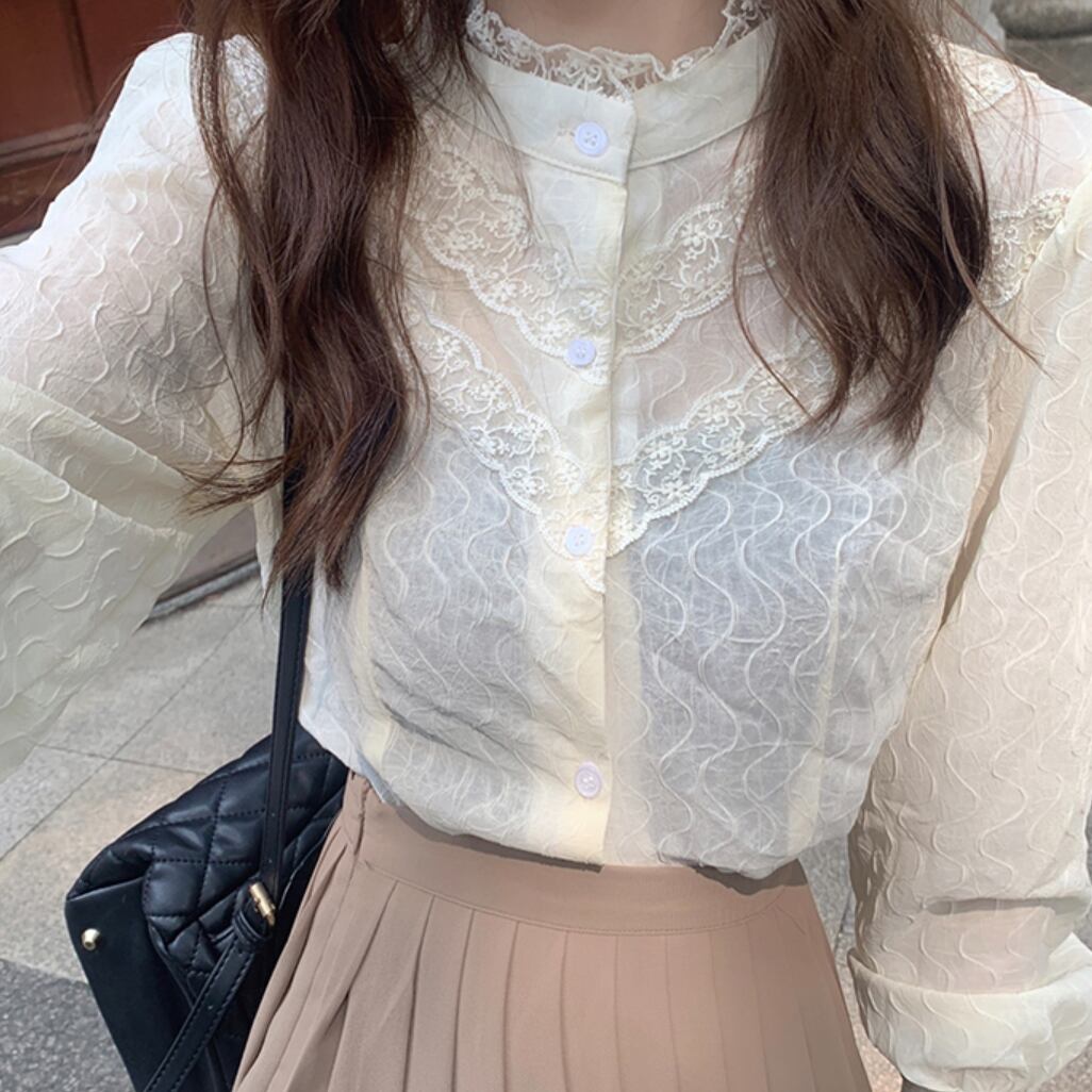 トップス ブラウス 白シャツ 白トップス 袖あり 長袖 萌袖 ハイネック 襟付き レース 切り替えデザイン かわいい 大人可愛い きれいめ シンプル カジュアル 大人 上品 おしゃれ お洒落 大人可愛い 大人女子 こなれ感 ラフ ラブリー キュート ガーリー ルーズ 春 秋 入学式 入園式 卒業式 卒園式 10代 20代 30代 オフィス ビジネス OL 通勤 学生 通学 デート お出かけ 公園デビュー 女子会 お泊まり 休日 着回し 普段使い 重ね着 お揃い 双子 韓国 韓国系 オルチャン