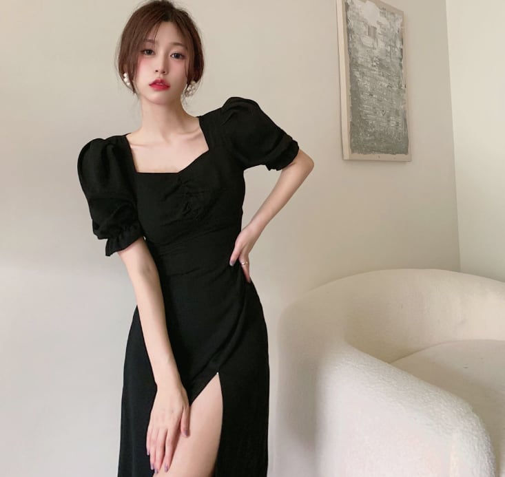 ドレス ワンピース パーティードレス 二次会ドレス Aラインドレス ショート丈 ロング丈 半袖 スクエアネック Aライン ハイウエスト 胸元 大人 お洒落 セクシー 20代 レディース パーティー イベント 夏 L XL 2XL 3XL 大きいサイズ 黒