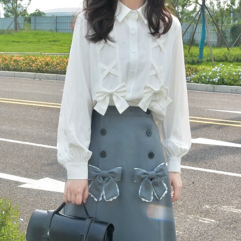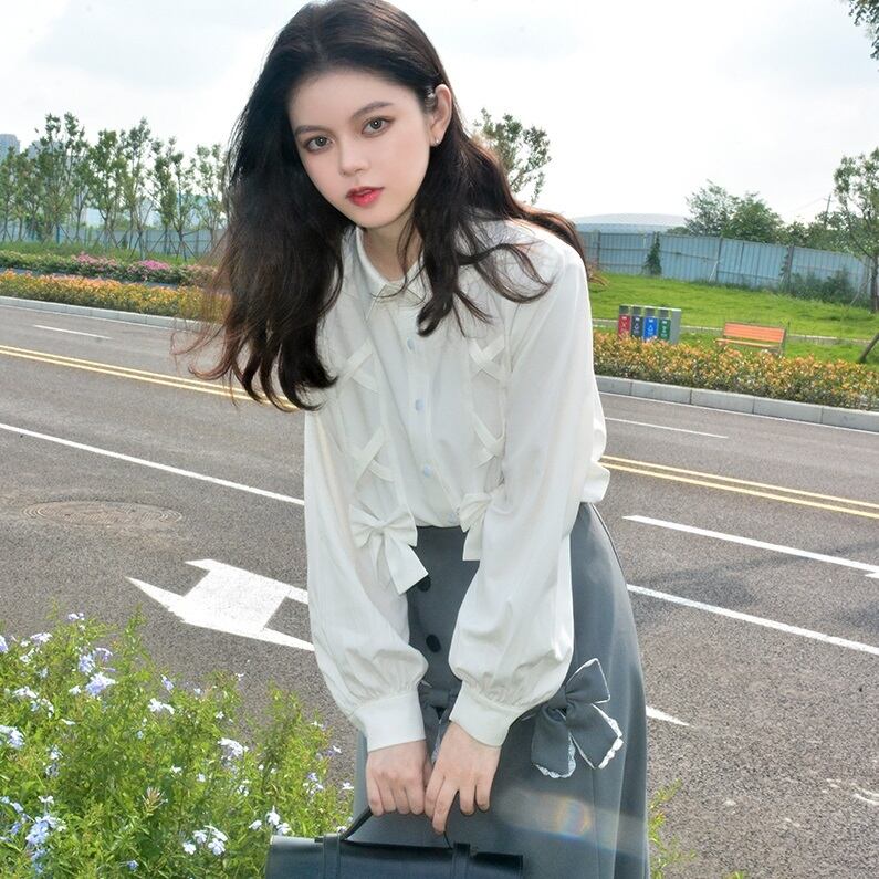 トップス ブラウス 白トップス 袖あり 長袖 襟付き ポロカラー 細身 ストレート リボン かわいい 大人可愛い きれいめ カジュアル 大人 おしゃれ 大人可愛い 大人女子 ラブリー キュート ガーリー 個性的 無地 夏 秋 10代 20代 レディース 女性用 OL 通勤 学生 通学 デート お出かけ 女子会 お泊まり 休日 イベント ファッション コーデ スタイル モテ プレゼント ギフト インスタ映え サイズ S M 色展開 白 ホワイト