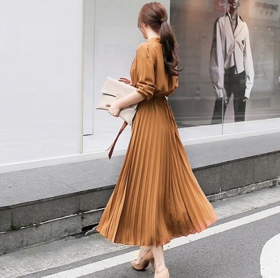 ワンピース フレアワンピース ミドル丈 袖あり 長袖 襟付き スタンドカラー フレア 細身 プリーツ 麻 大人可愛い きれいめ シンプル 大人 上品 おしゃれ お洒落 大人女子 クール モード系 無地 秋 冬 入学式 入園式 卒業式 卒園式 謝恩会 結婚式 二次会 10代 20代 30代 レディース 女性用 オフィス ビジネス OL 通勤 学生 通学 デート お出かけ 女子会 スタイル 美脚 脚長 サイズ S M L XL 色展開 ブラック ネイビー ライトグレー