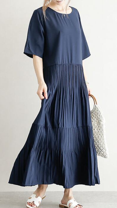 ワンピース ロングスカート プリーツスカート フレアスカート フレアワンピース ティアードワンピース ロング ロング丈 9分丈 アンクル丈 袖あり 半袖 5分袖 五分袖 ラウンドネック フレア セミフレア ストレート プリーツ かわいい 大人可愛い きれいめ シンプル カジュアル 大人 上品 おしゃれ お洒落 大人可愛い 大人女子 こなれ感 ラフ ラブリー キュート モダン とろみ感 抜け感 無地 春 夏 10代 20代 30代 40代 着回し 普段使い 色展開 黒 ブラック ベージュ ネイビー