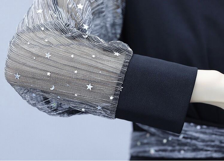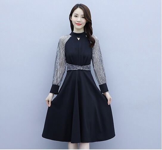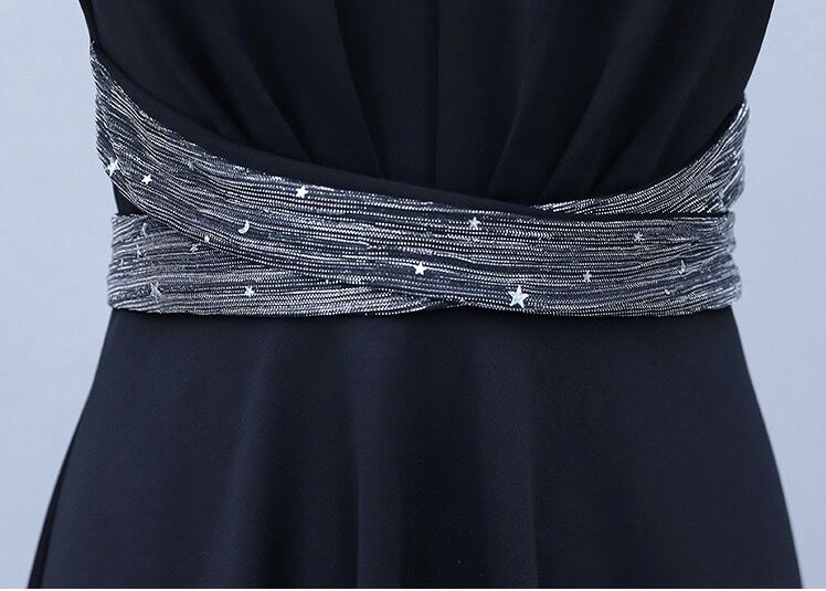 ウエストと袖部分の星の刺繍がポイントのエレガントなワンピースです。