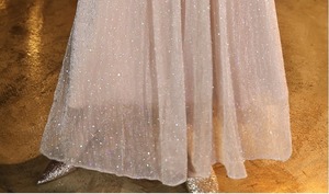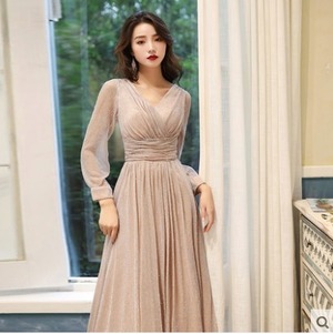 ラメの入った生地で華やかさがありつつ、ロング丈なので落ち着きのある雰囲気です。