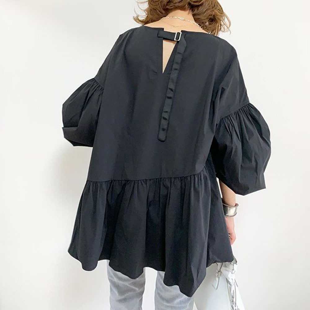 トップス 袖あり 長袖 ボリューム袖 パフスリーブ Vネック 襟なし フレア ペプラム Aライン ベルト 薄手 かわいい 大人可愛い シンプル カジュアル 大人 おしゃれ お洒落 大人可愛い 大人女子 ラフ 存在感 とろみ感 抜け感 無地 学生 通学 デート お出かけ 女子会 お泊まり 旅行 着回し 普段使い 楽ちん モテ 黒 ブラック