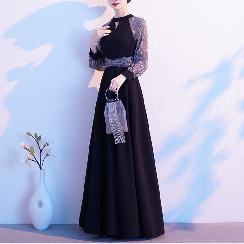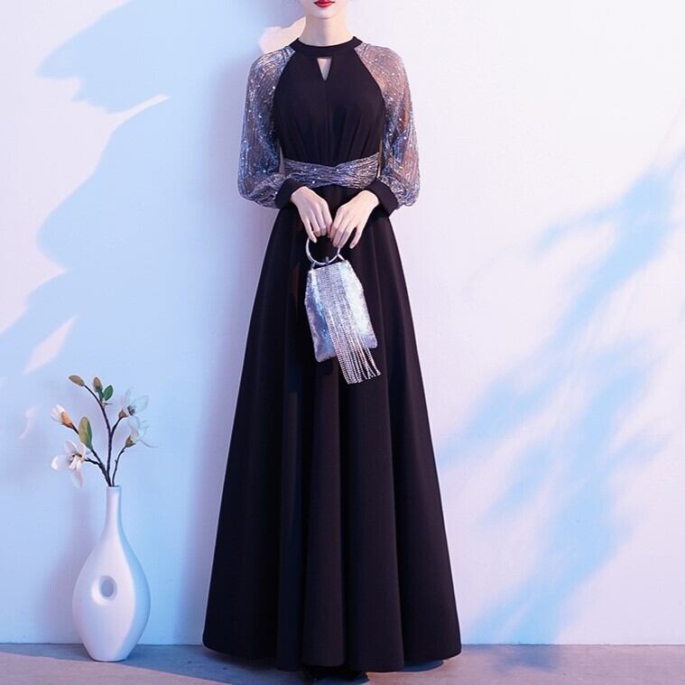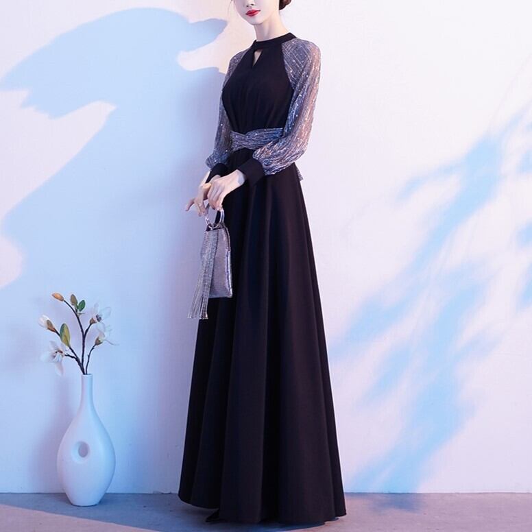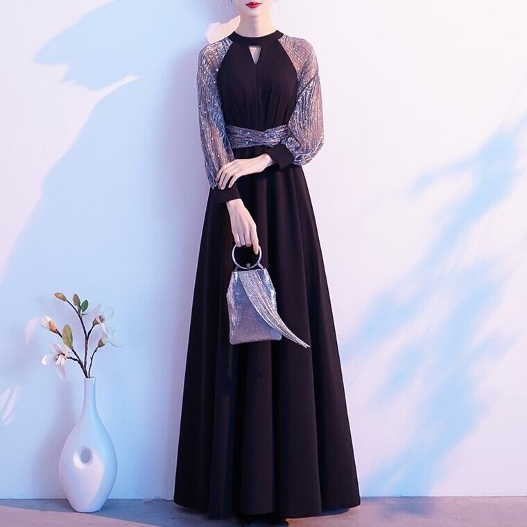 ドレス ワンピース パーティードレス パーティドレス 二次会ドレス ロングドレス 演奏会ドレス 発表会ドレス ステージドレス Aラインドレス ブラックドレス 膝下 ロング ロング丈 袖あり 長袖 ラウンドネック ファスナー 透け感 異素材MIX かわいい 大人可愛い 大人 おしゃれ お洒落 大人可愛い 大人女子 エレガント 抜け感 華やか 主役級 無地 柄 パーティー イベント モテ 結婚式 二次会 2次会 お呼ばれ