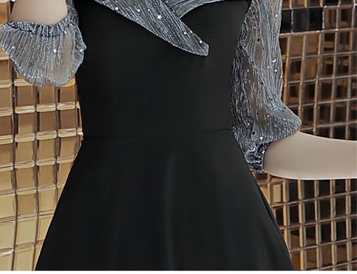 襟と腕部分のシースルーと、星のスパンコールが特徴的。