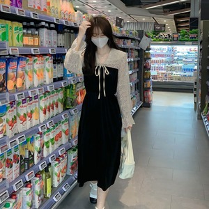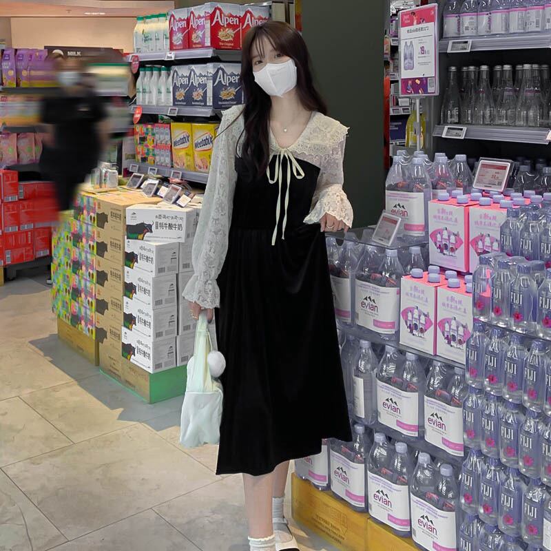 ワンピース ロング丈 袖あり 長袖 ハイネック 襟付き ハイネック ビッグレースカラー Aライン ハイウエスト フェイクツーピース かわいい シンプル カジュアル おしゃれ 大人可愛い こなれ感 ラフ ラブリー キュート ガーリー 個性的 無地 春 秋 10代 20代 レディース 女性用 オフィス OL 通勤 学生 通学 デート お出かけ 女子会 お泊まり 休日 イベント 旅行 着回し 普段使い コーデ サイズ S M L