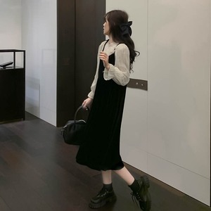 レースブラウスの上から、ビスチェワンピースを着たような、フェイクワンピース