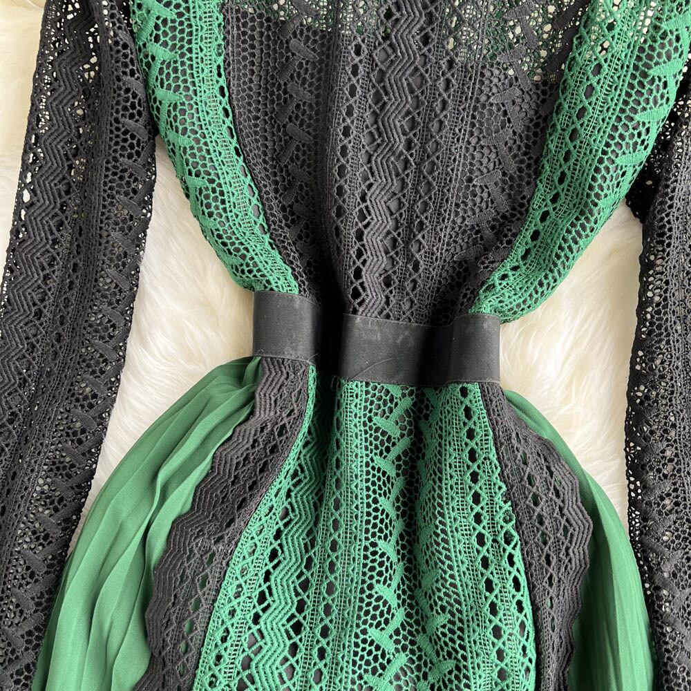 ワンピース ロング丈 袖あり 長袖 ラウンドネック 襟付き レース ハイウエスト 透け感 かわいい 大人可愛い きれいめ 大人 上品 おしゃれ 大人女子 ラブリー キュート ガーリー 個性的 無地 春 秋 10代 20代 レディース 女性用 OL 通勤 学生 通学 デート お出かけ 女子会 お泊まり 休日 リゾート 旅行 ホテル ガーデン レストラン ファッション スタイル モテ プレゼント ギフト インスタ映え サイズ M L XL 2XL 色展開 ブラック グリーン