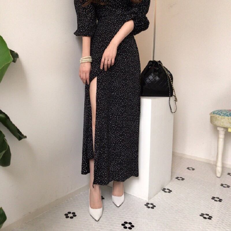 ワンピース ロング丈 袖あり 長袖 パフスリーブ Vネック 襟なし タイト ストレート 透け感 大人可愛い きれいめ シンプル 大人 上品 おしゃれ 大人女子 ガーリー エレガント 水玉 春 秋 10代 20代 レディース 女性用 オフィス ビジネス OL 通勤 学生 通学 デート お出かけ 女子会 お泊まり 休日 ホテル ガーデン レストラン ファッション スタイル モテ プレゼント ギフト インスタ映え サイズ S M L
